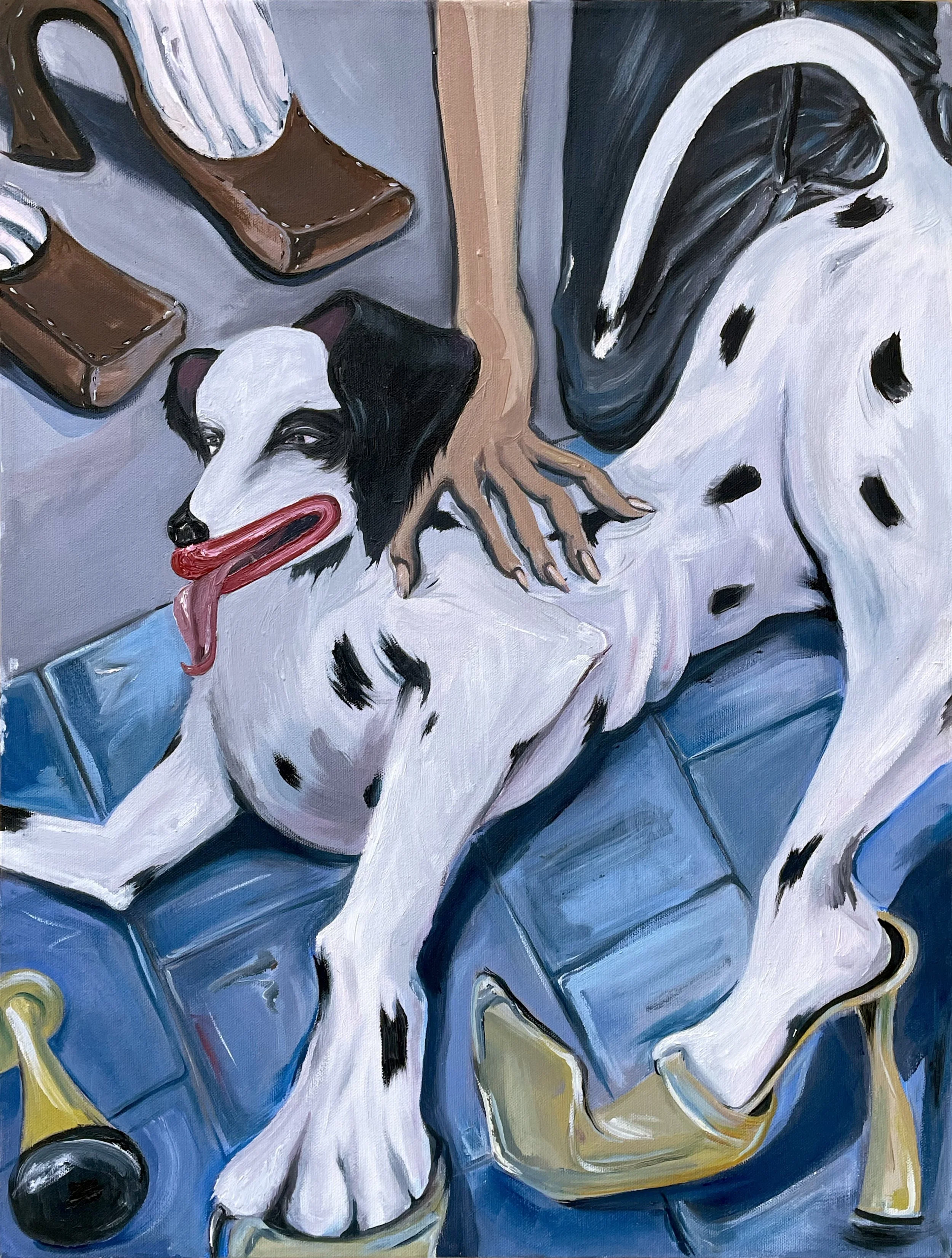Dogs Running in Heels Study (2025), Oil on Canvas Paper